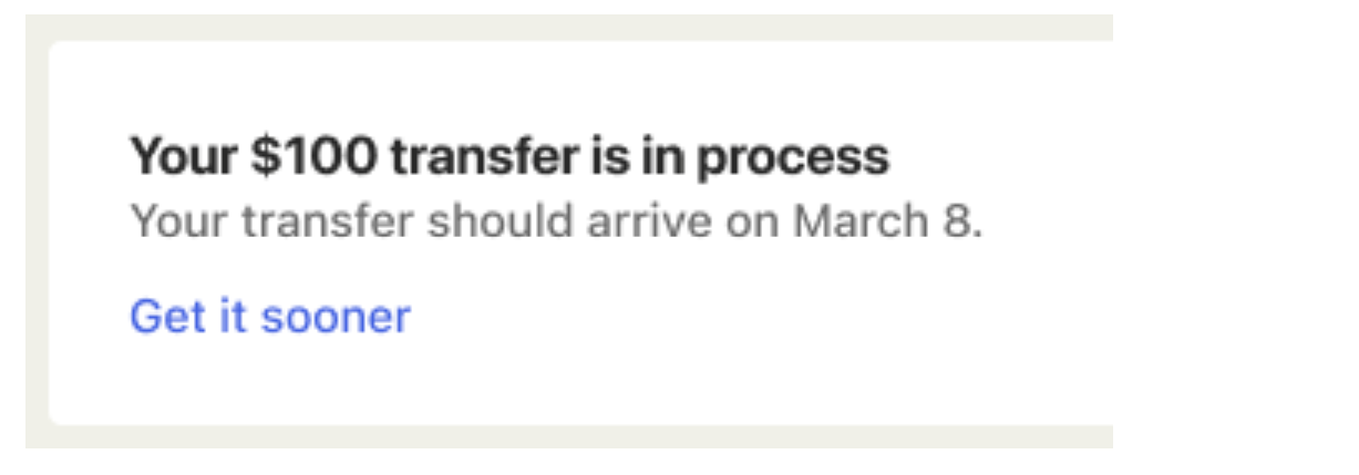 Find the transfer confirmation tile on your home screen, and tap “Get it sooner”